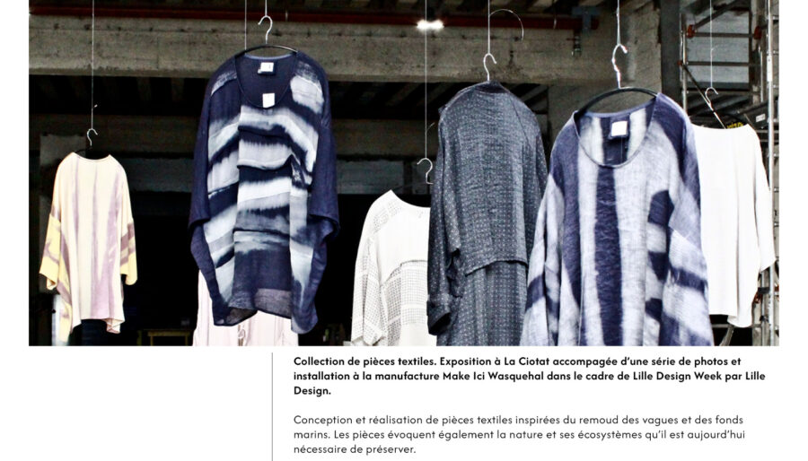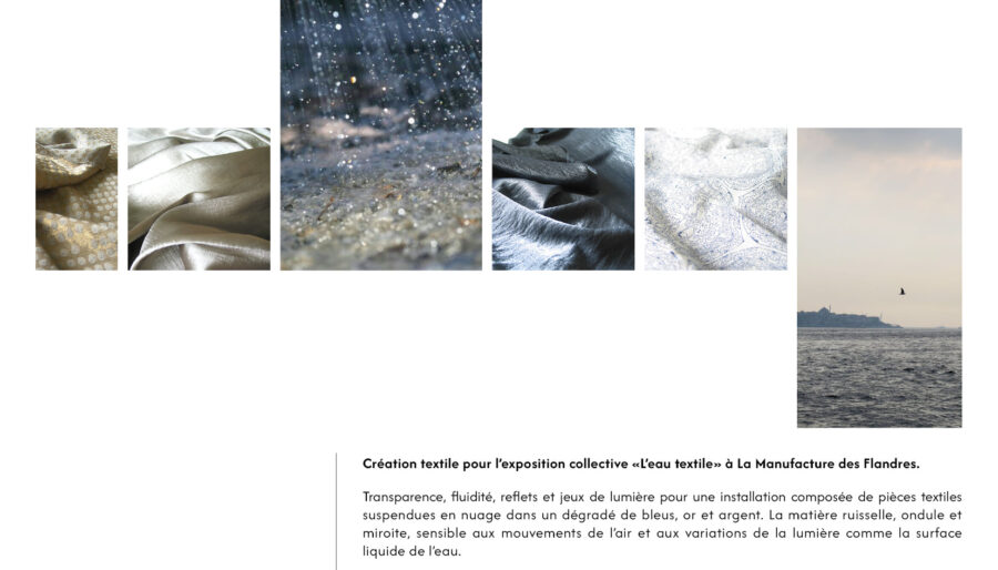 La collection W(e)aves fait écho à mon projet Ondes qui a été exposé à La Manufacture de Roubaix de janvier à mars 2017 puis à Baraka Coopérative à l’occasion de la Nuit des Arts à Roubaix. W(e)aves a été conçue autour de la matière « eau », à la fois quotidienne mais absolument précieuse. Afin de retranscrire cette dualité, les vêtements sont volontairement très épurés et réalisés dans des matières qui, grâce à leur technicité, ressemblent en tout point à l’eau : fluidité, reflets et surfaces à la fois parfaitement lisses et reliefées.